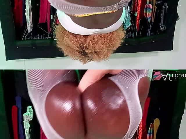 Naughty black girl experiences intense anal play with a 12 inch white dildo cum machine!