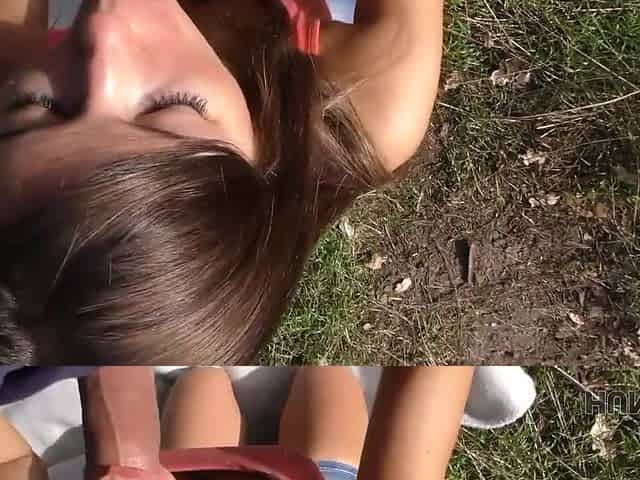 HUNT4K. Slender teen 18+ tries outdoor anal sex while cuckold films this