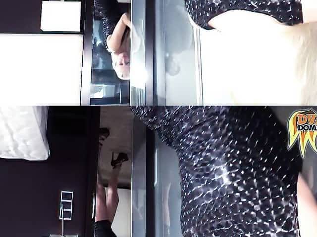 Babe in changing room trying on cloths and getting ass spied