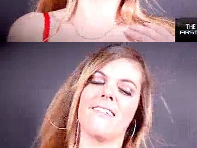 Anabelle Pync pulls her micro thong to the side using a fucking machine