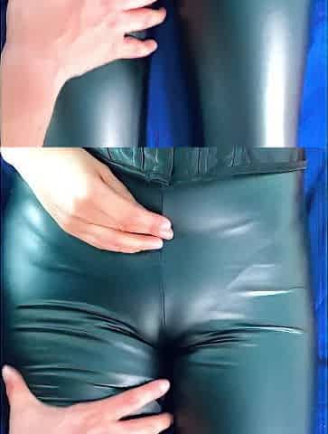 Rubbing cameltoe and spanking booty in leather leggings