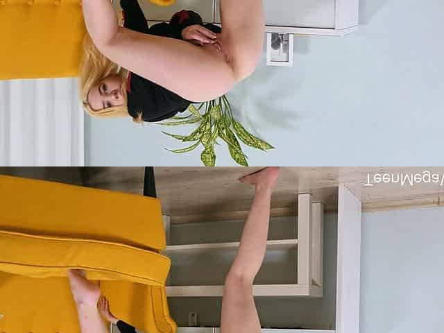 Breasty Golden-Haired Teen With Giant Puffy Cameltoe Snatch!