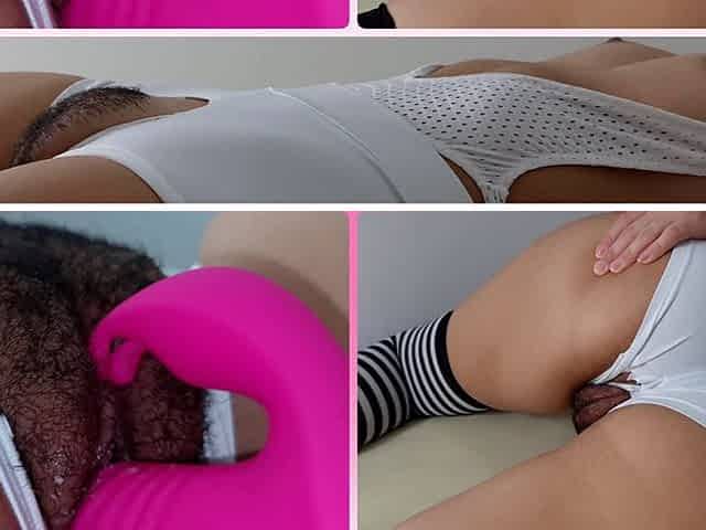 Naughty teen tries on panties and flaunts her hairy cameltoe pussy in a music video
