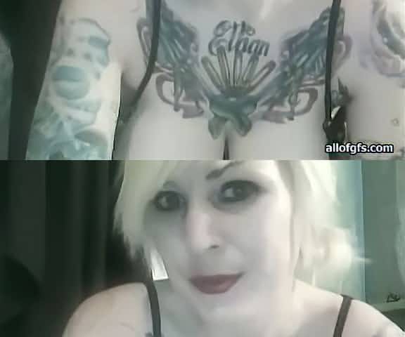 Well stacked tattooed harlot smoking on a web camera