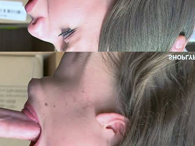 Mega buxom blond filth blows thick giant cock on camera