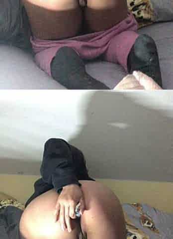 girl in hose positions ass in front of the camera