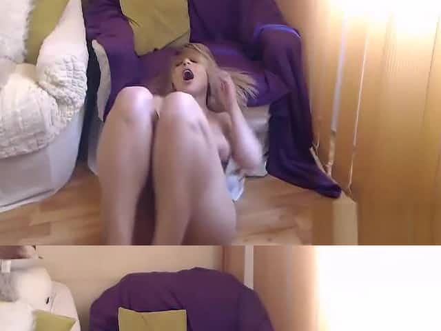 Blonde busty camgirl masturbating and squirting on webcam