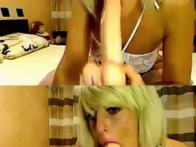 Blonde Russian Camgirl Peach Dildo Facefuck