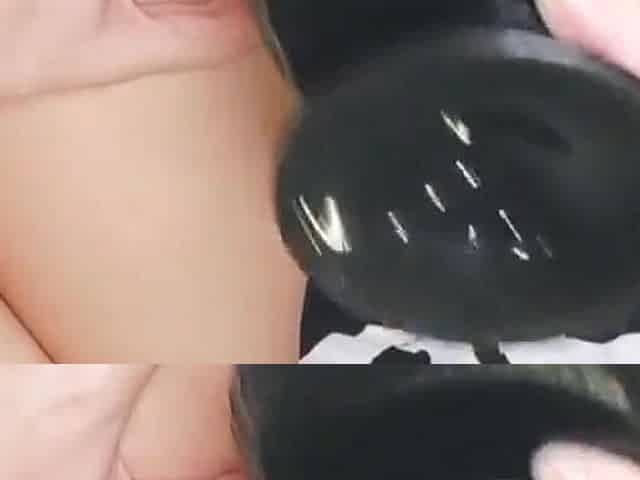 Stretching tight pussy with a big dildo and a hot orgasm