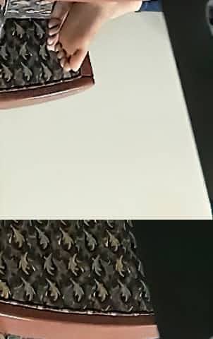 Candid flats dangling under table