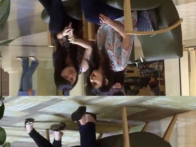 two ladies candid nylon legs