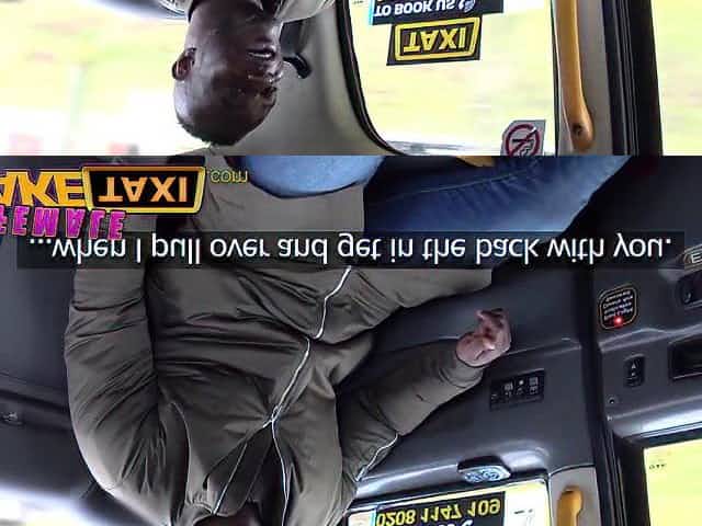 Giant black stud fucks a busty white brunette in taxi