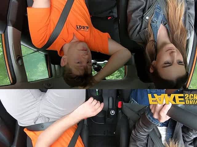 Mega busty driving instructor fucks her student right in the car