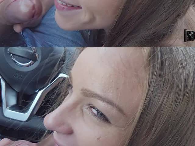 French teen Angel Emily is sucking cock in the car