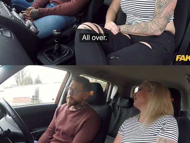 The busty English driving instructor squirts in the car