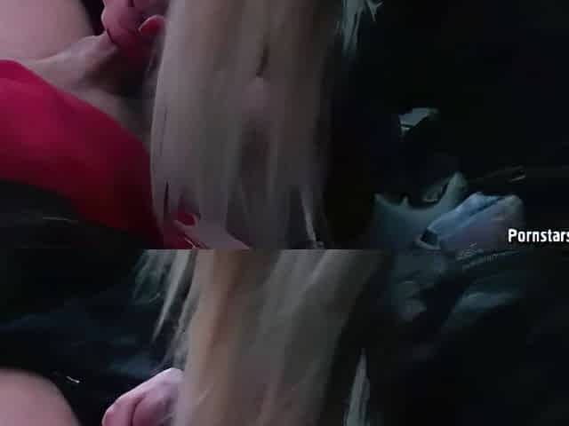 Innocent blonde blows massive dick in a car