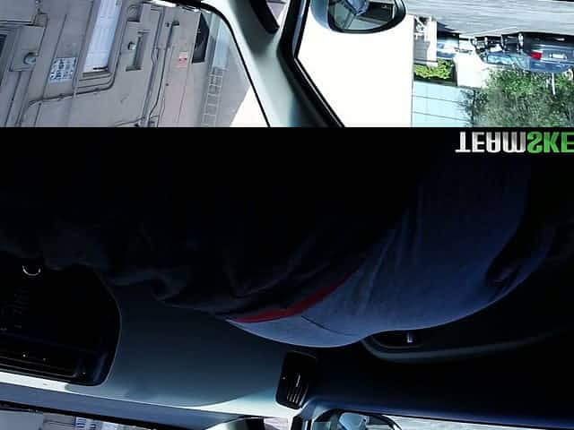 Masked bastard fucks the shit out of lewd brunette right in her car