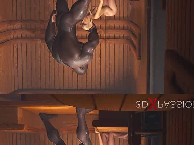 Virgin nerdy girl in glasses gets fucked by a black big cock in sauna