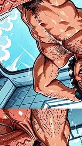 Sexy hairy gay men cartoon Brad slips his manhood up Benjami