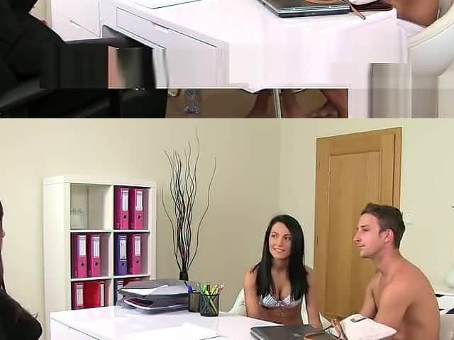 Bodacious dark haired chick strips on her first job interview