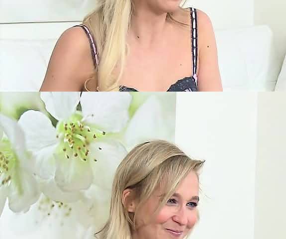 Blonde masturbates for female agent