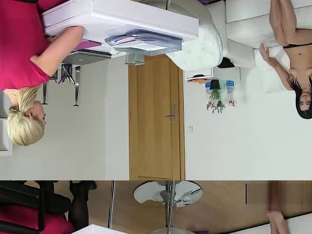 Blonde agent taking care of brunettes hot shaved pussy