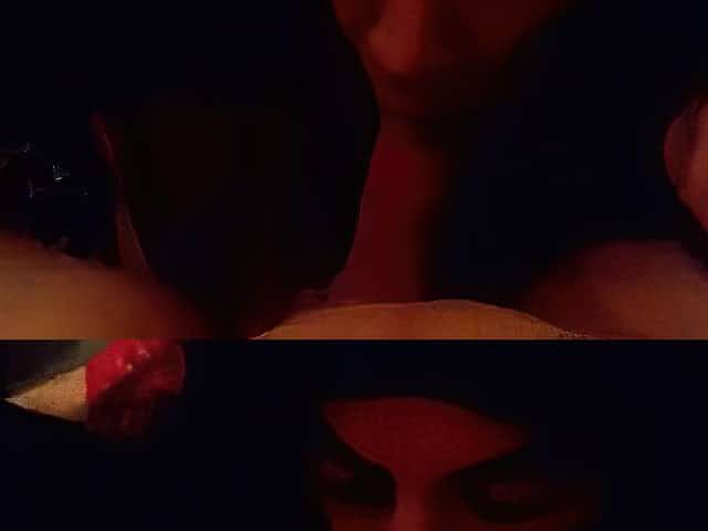 Veronica Leal and Cherry Kiss are giving impressive blowjobs to a friend during a casual threesome
