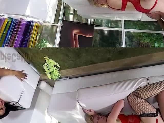 Busty blonde girl Cathy gets into moist 69 action