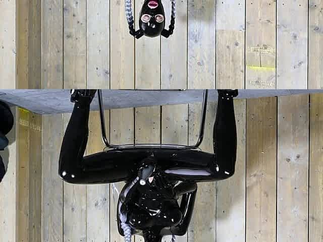 Laura on Heels amateur 2021 fastened on a machine in latex catsuit, this babe's throated and hard drilled