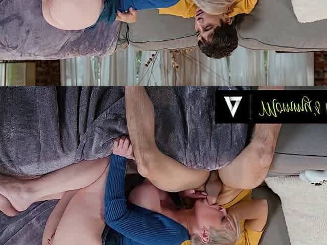 Busty stepmom caught couple having fun on the couch