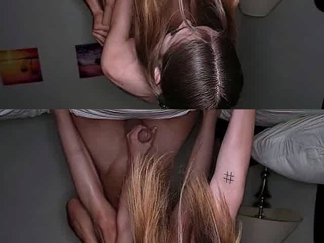 My stepbrother catches me pleasuring myself on camera and wants to join in