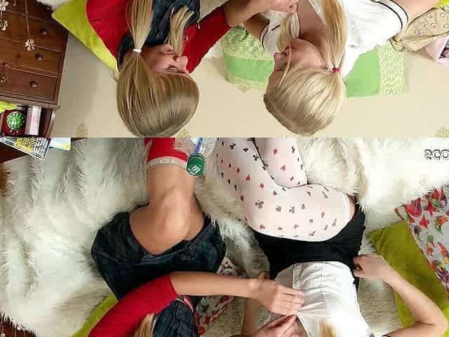 Blonde skinny college teens evelyn and sandra caught lesbian fuck