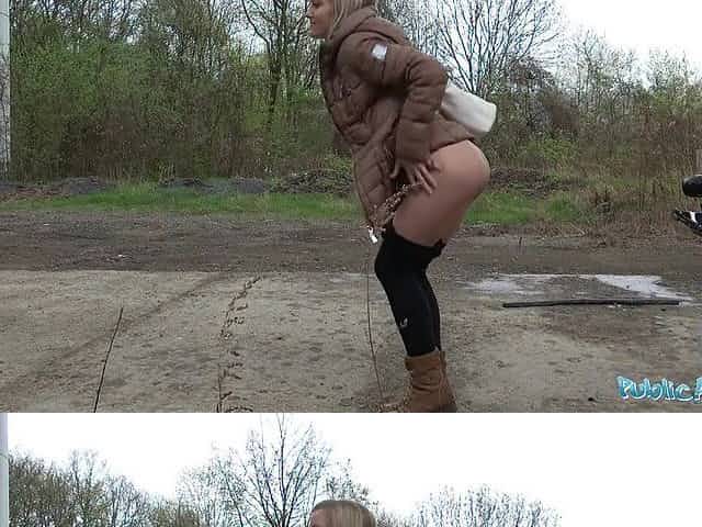 Public Agent Blond runs from Police after screwing outdoors