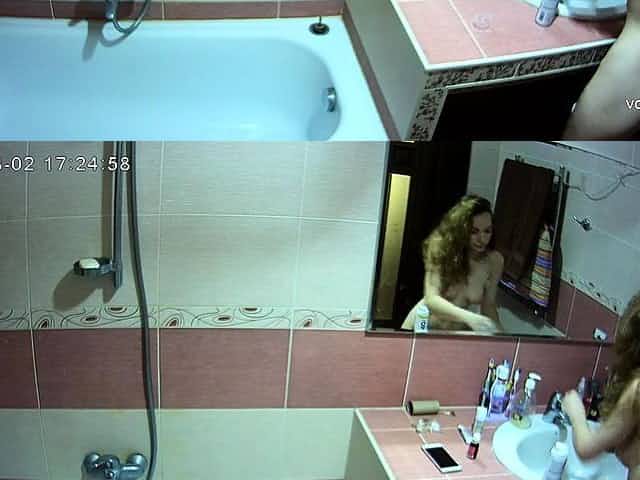 Women caught on a spy camera in a shower