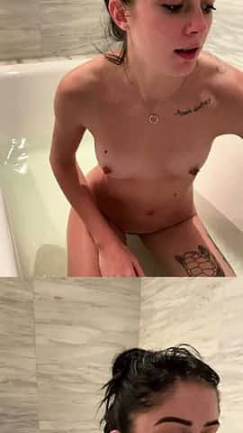 SMALL TITS BRUNETTE, TEEN GIRLFRIEND TATTOOED IN THE SHOWER