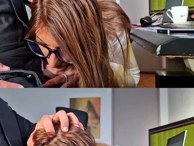 The secretary enjoys bending over & spreading her thighs for the clients to watch (boss unhappy)