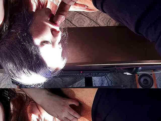 Stepmom caught stepson jerking off, and he finished her deep in the throat