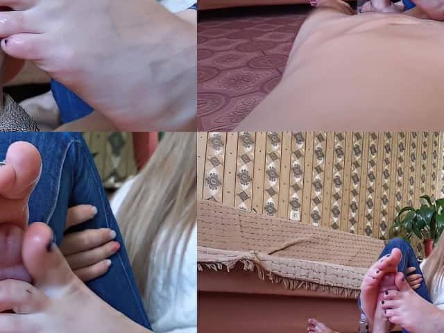 Did a footjob to her neighbor for a favor. And caught it on camera