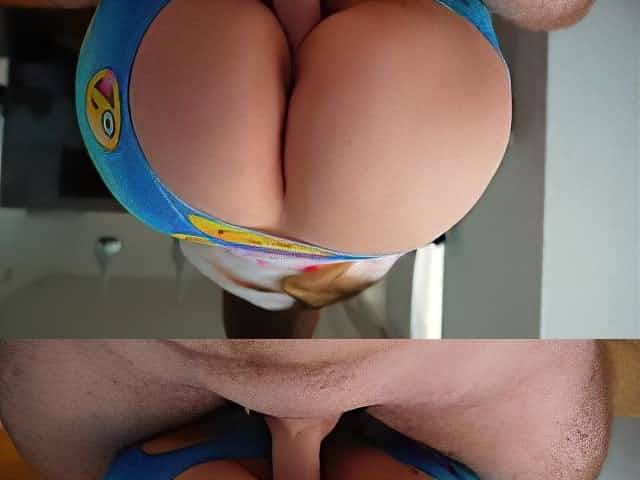 Stepsister caught me jerking off with her panties and helped me cum