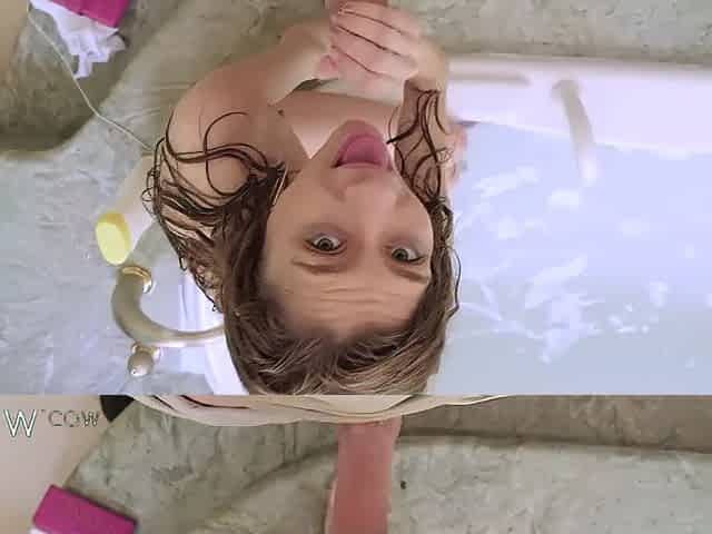 Step sister gives step brother a blowjob in the bath
