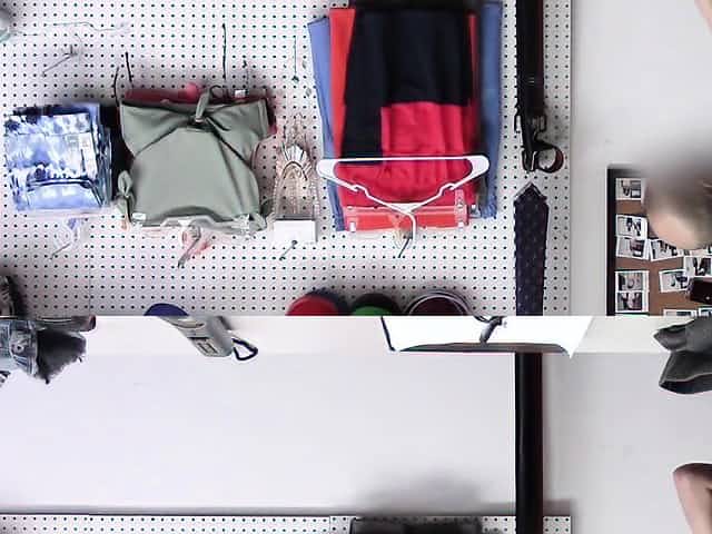 A cute blonde shoplifter sits on a hard cock on CCTV