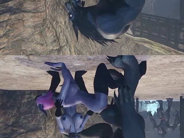 Fierce werewolf ravages Night Elf from behind in the world of Warcraft!