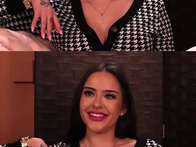 Stunning babe jerking off tiny cock dude