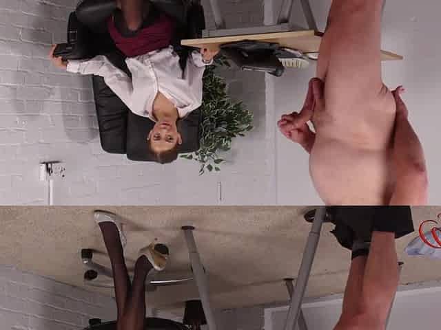 Brunette Kendall Kay wearing high heels watching her coworker