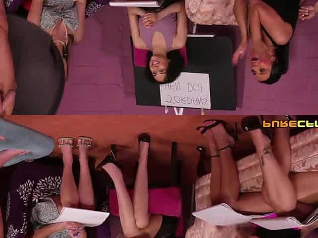 Beautiful women Cindy Sun and Alice Judge in a hot cfnm scene.
