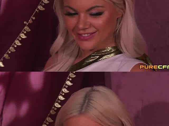 Beautiful long-haired blonde has a hot cfnm experience with a mature couple.