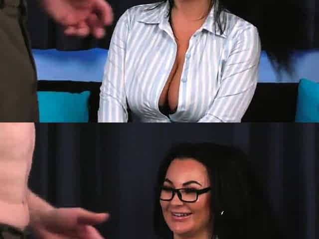 CFNM bosomy slut sucks future boss in office to get hired