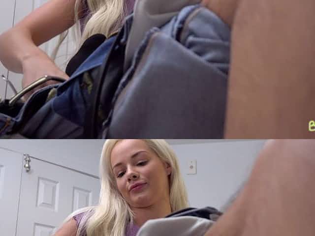 Depraved whorish blonde step sister Elsa Jean wins hard boner cock for BJ