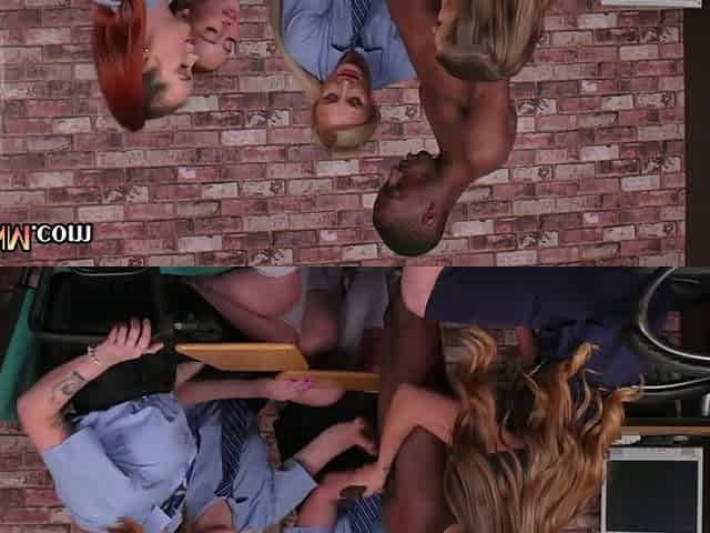 Interracial threesome with amateur college redhead