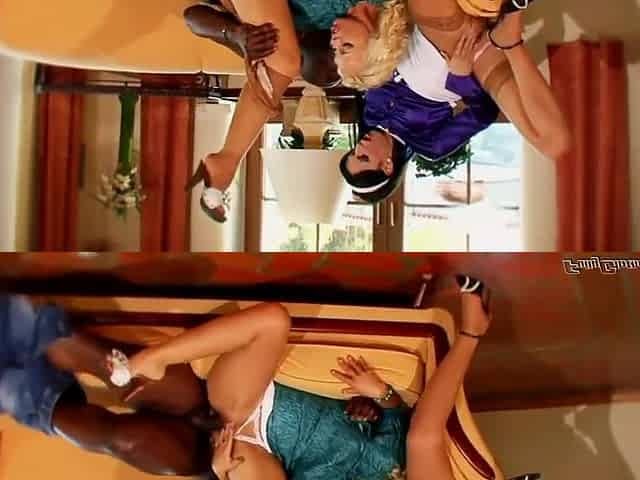 Blond Hair Lady Rides Black Monstercock Doggie Style